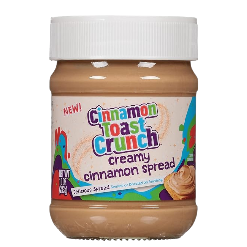 Take your taste buds on an epic adventure with Cinnamon Toast Crunch Creamy Cinnamon Spread. Now you can spread, swirl and drizzle the flavor of the beloved Cinnamon Toast Crunch cereal on just about anything. This crazy-delicious cinnamon spread with notes of brown sugar and graham flavor makes it a fun alternative to chocolate hazelnut spreads and other spreads. Spread onto sandwiches, swirl into smoothies, drizzle on bananas or simply enjoy by the spoonful. Cinnamon Toast Crunch Creamy Cinnamon Spread is shelf stable and easy to store in your pantry or cabinet. Satisfy your sweet tooth anytime.